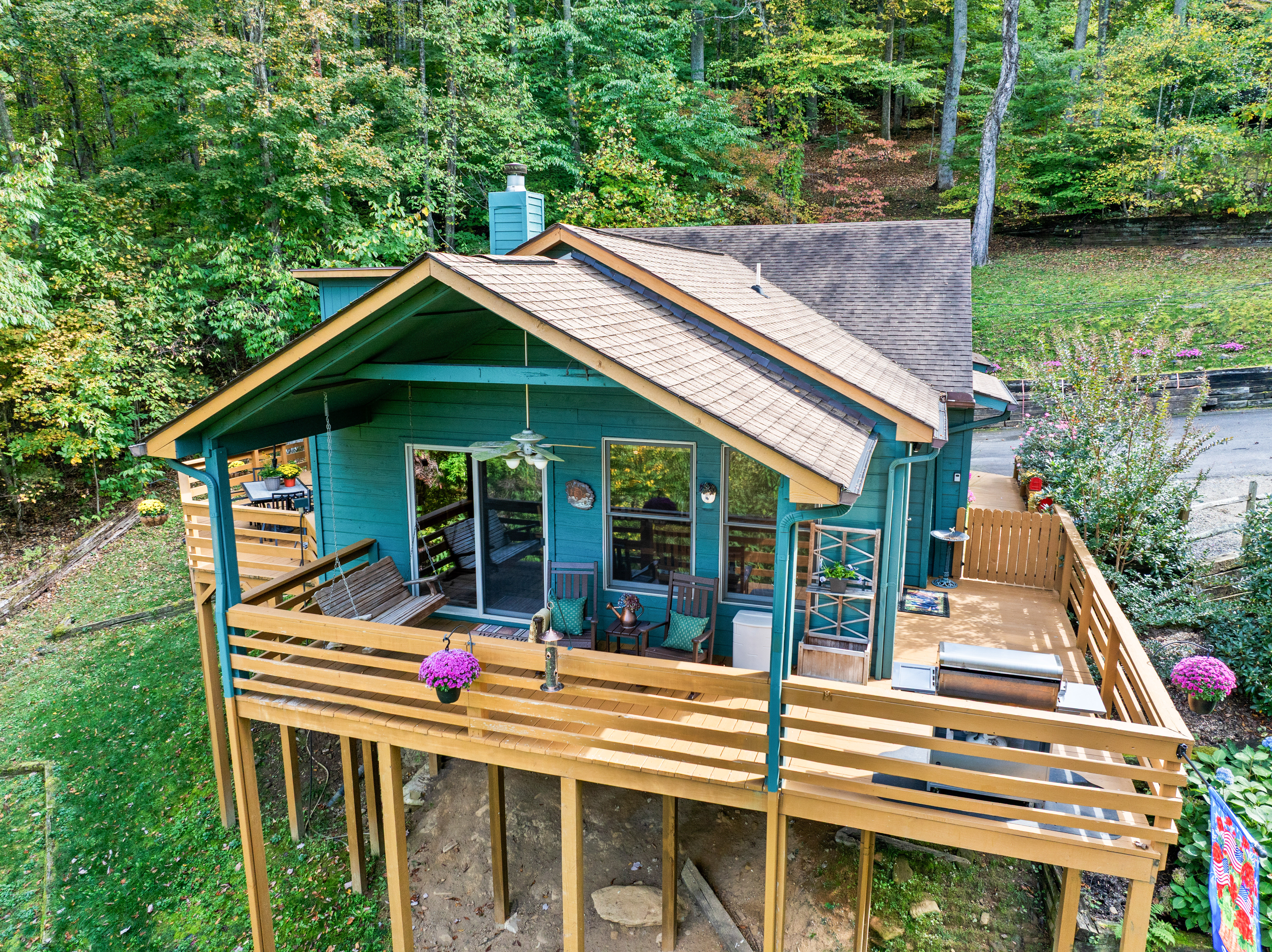 Bella Vita is a ONE LEVEL-VERY CLEAN home with Central Heat and Air in the Mountains of Maggie Valley, NC near the Smoky Mountain National Park. Your vacation starts with easy paved roads and you will enjoy the mountain view when relaxing or dining on either of the two private decks as well as when you are sipping a cold drink while watching the colorful hummingbirds, songbird’s, deer, wild turkeys and the occasional black bear who visit the property.