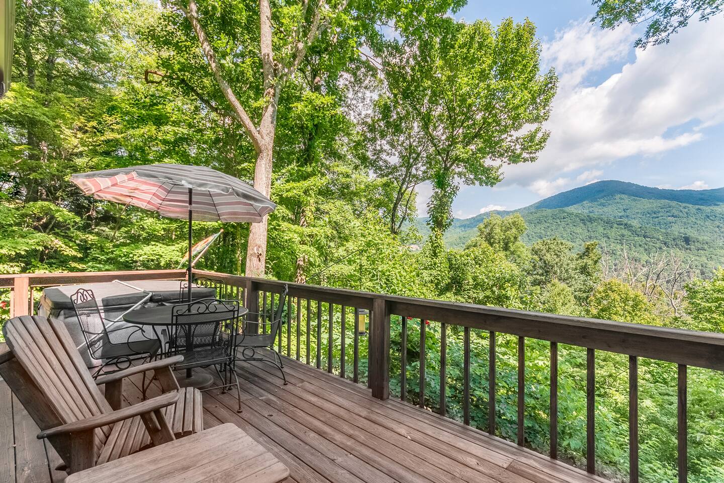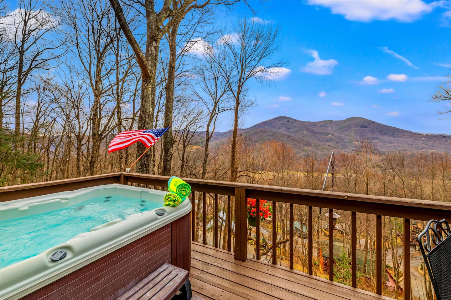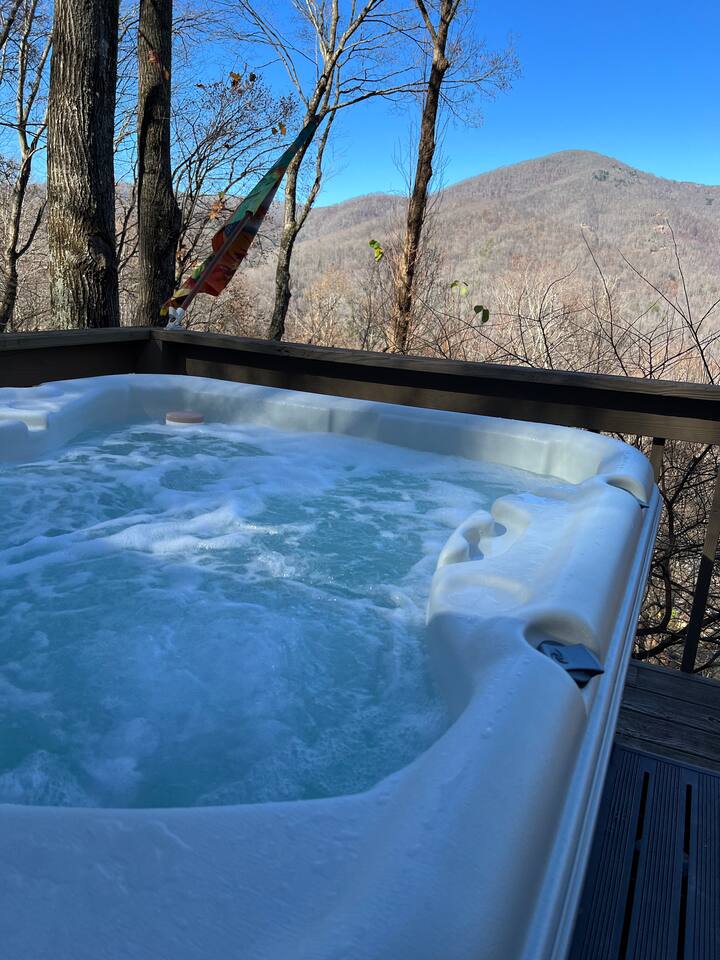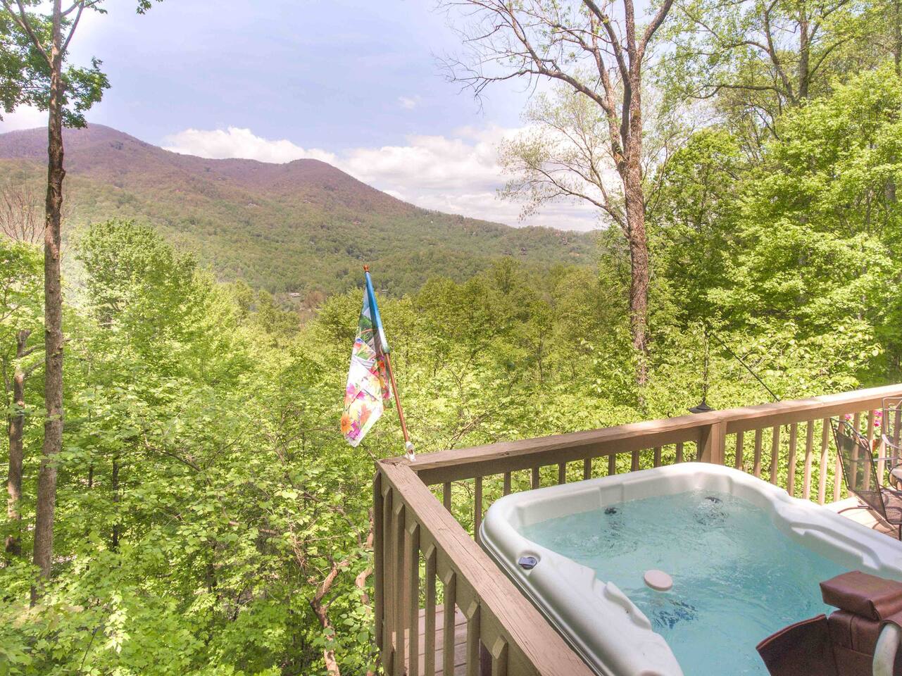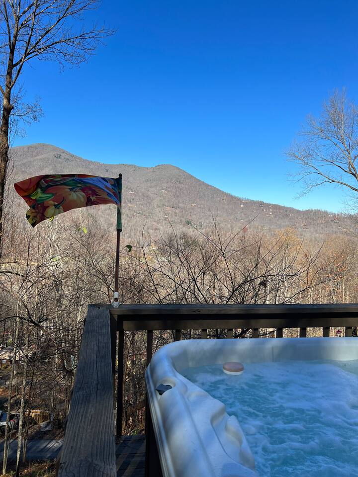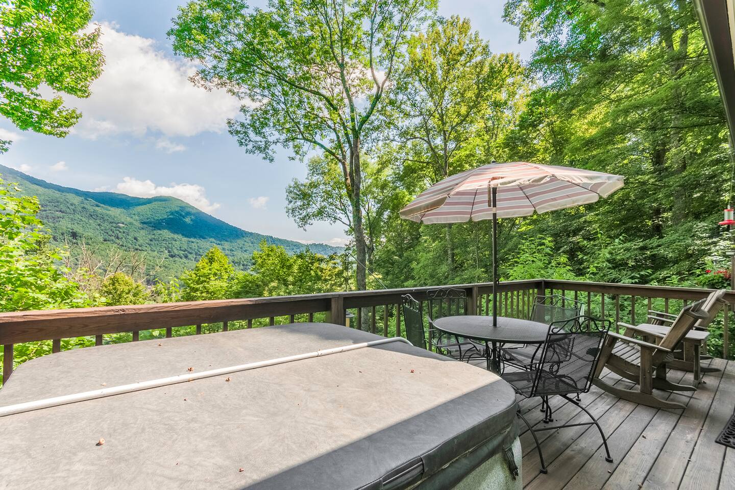 This VERY CLEAN and updated cabin with Central Heat and Air in the Mountains of Maggie Valley, NC. Your vacation starts in a private setting with easy paved roads. You will enjoy fabulous mountain views from the great room and master bedroom, as well as when you are relaxing in the hot tub, or dining on the deck while watching the colorful songbirds or occasional black bear that visits the property. Our cleaning fee includes a ready to go hot tub and we provide plenty of firewood for your stay!