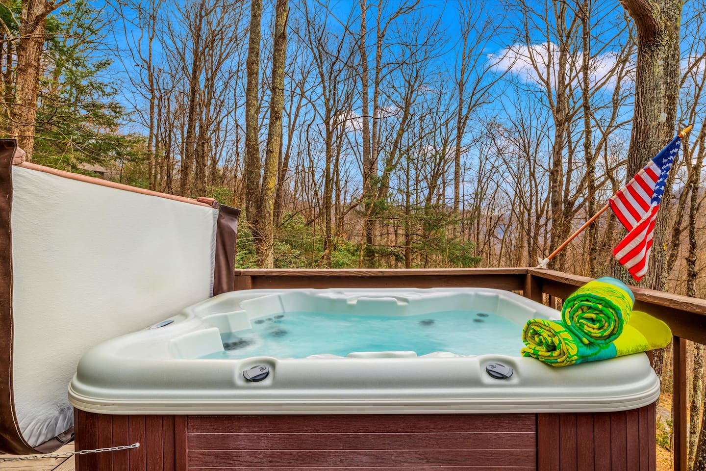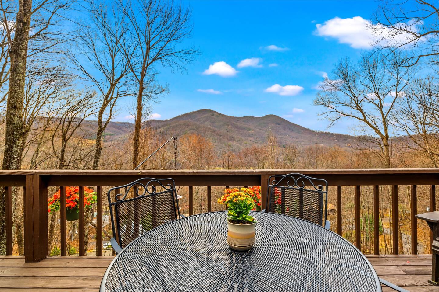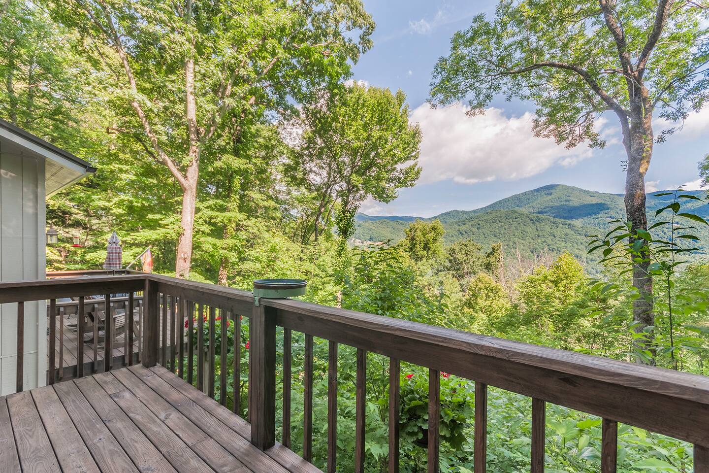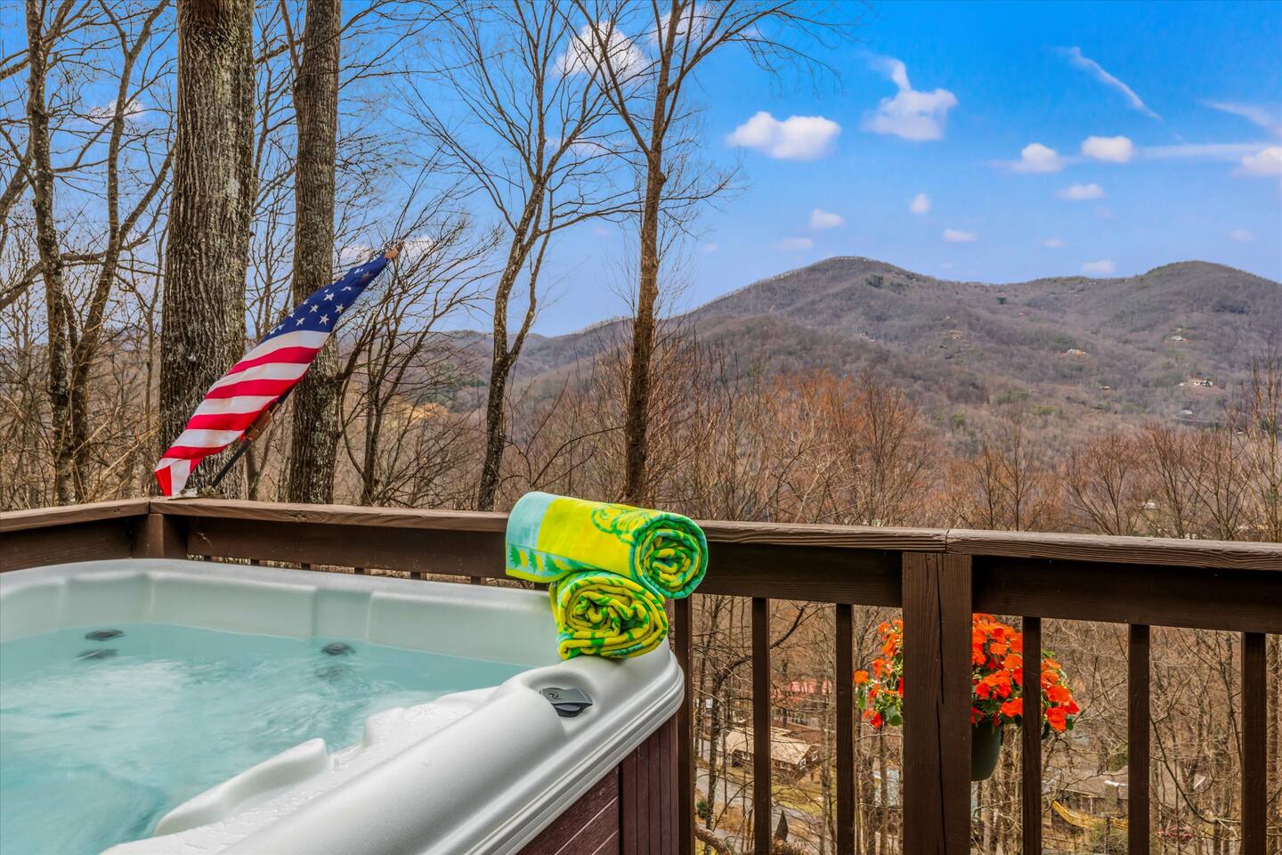 This VERY CLEAN and updated cabin with Central Heat and Air in the Mountains of Maggie Valley, NC. Your vacation starts in a private setting with easy paved roads. You will enjoy fabulous mountain views from the great room and master bedroom, as well as when you are relaxing in the hot tub, or dining on the deck while watching the colorful songbirds or occasional black bear that visits the property. Our cleaning fee includes a ready to go hot tub and we provide plenty of firewood for your stay!