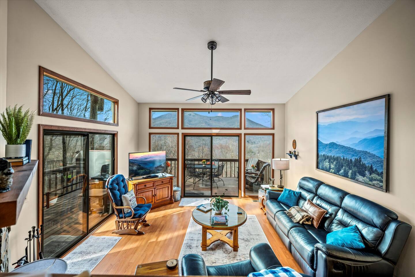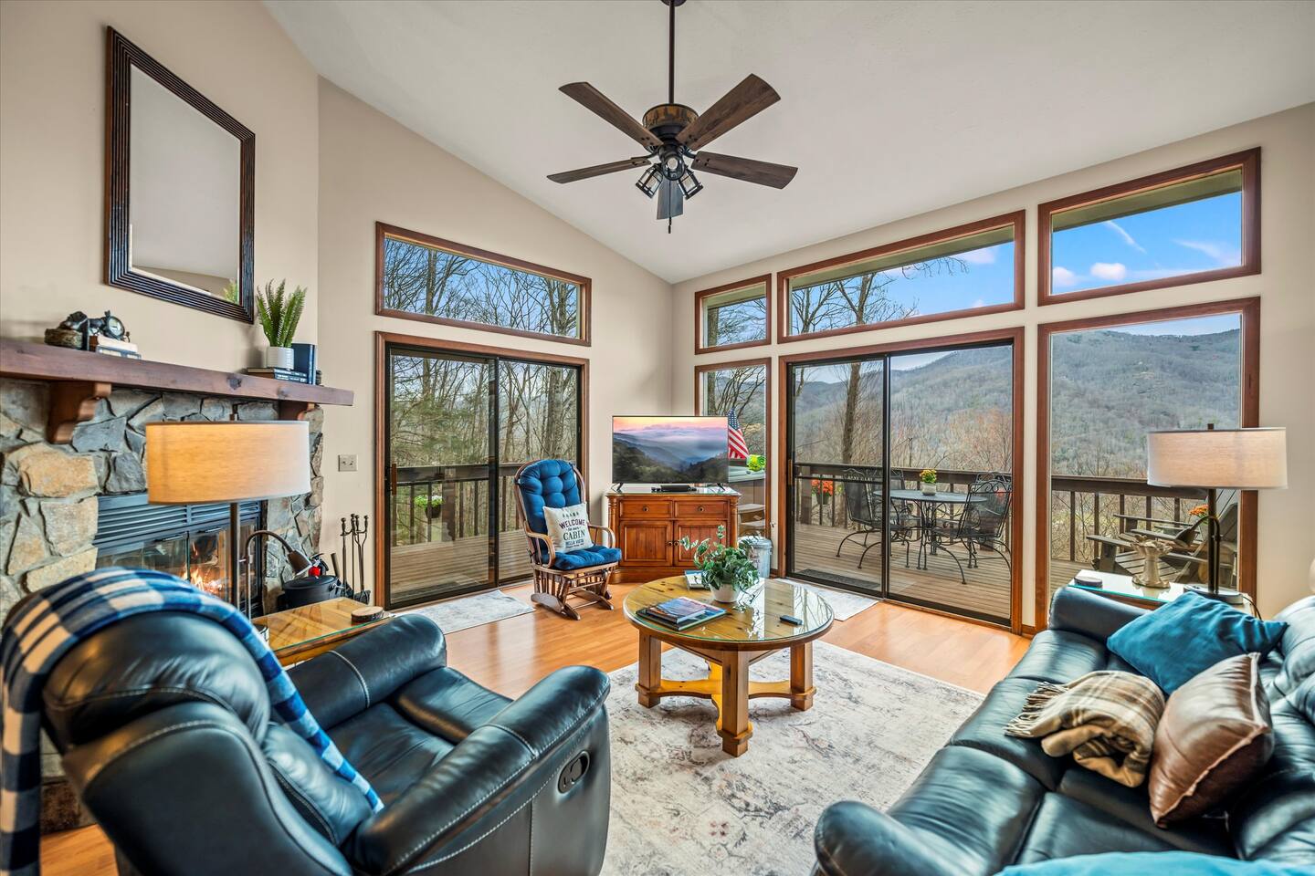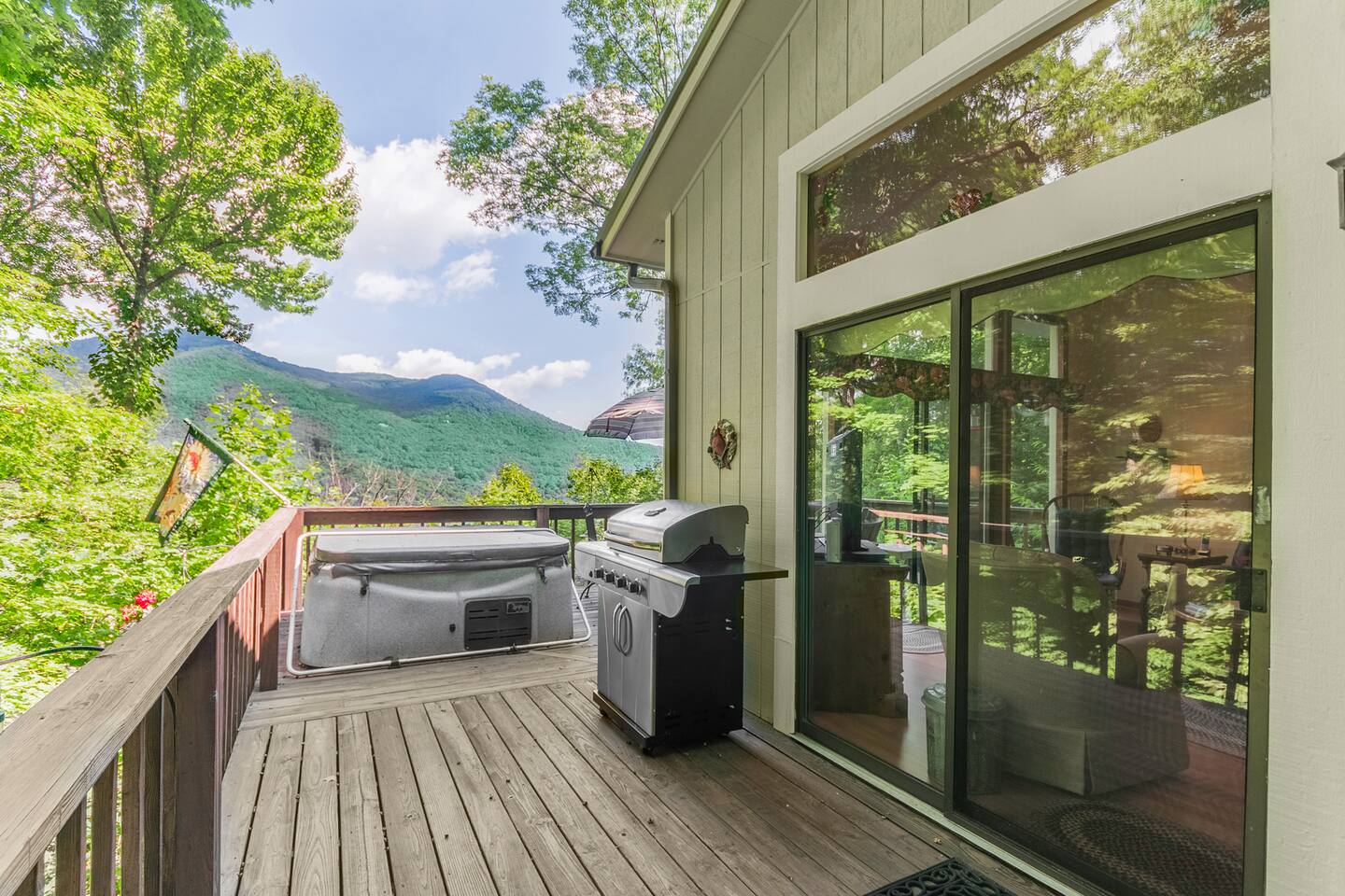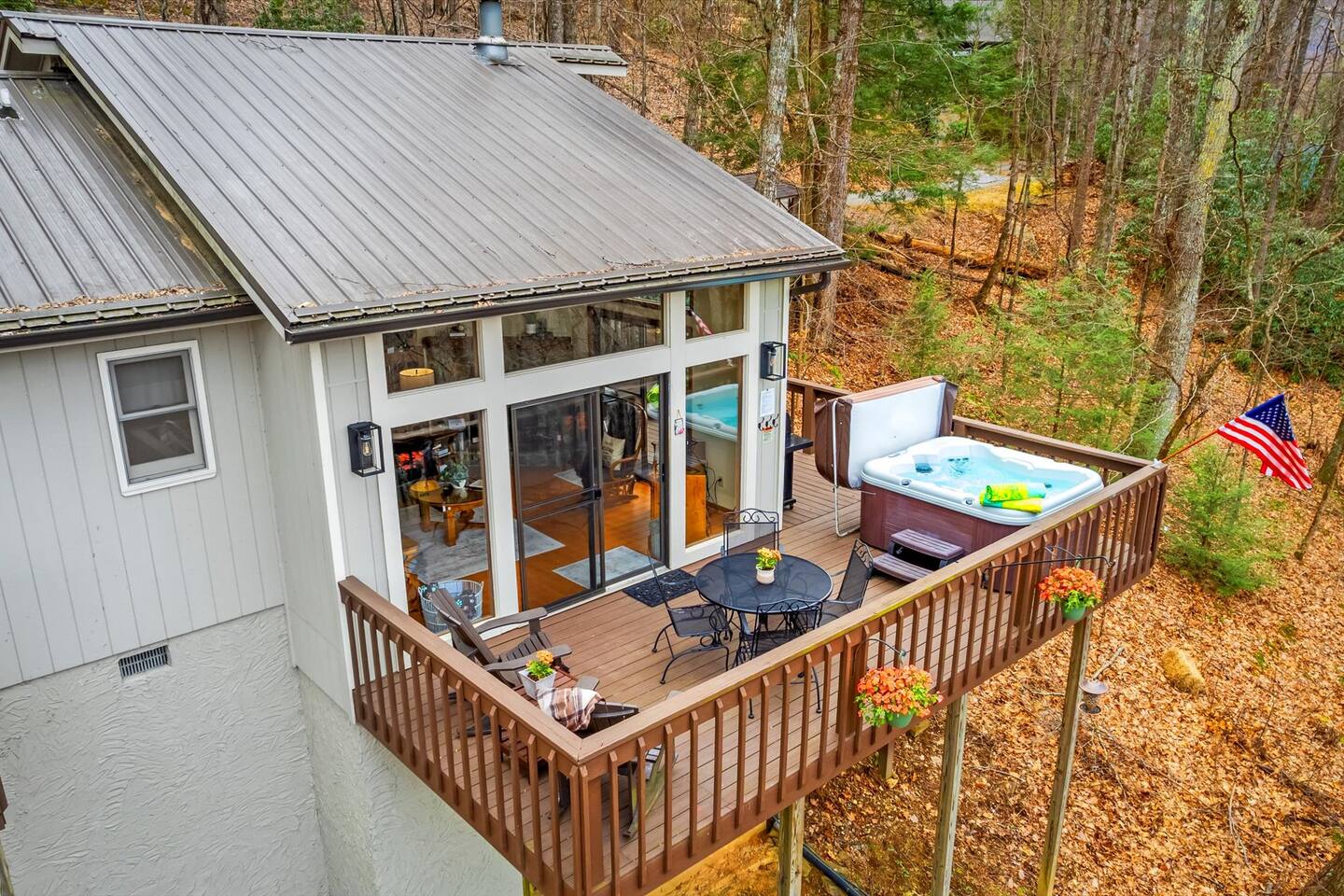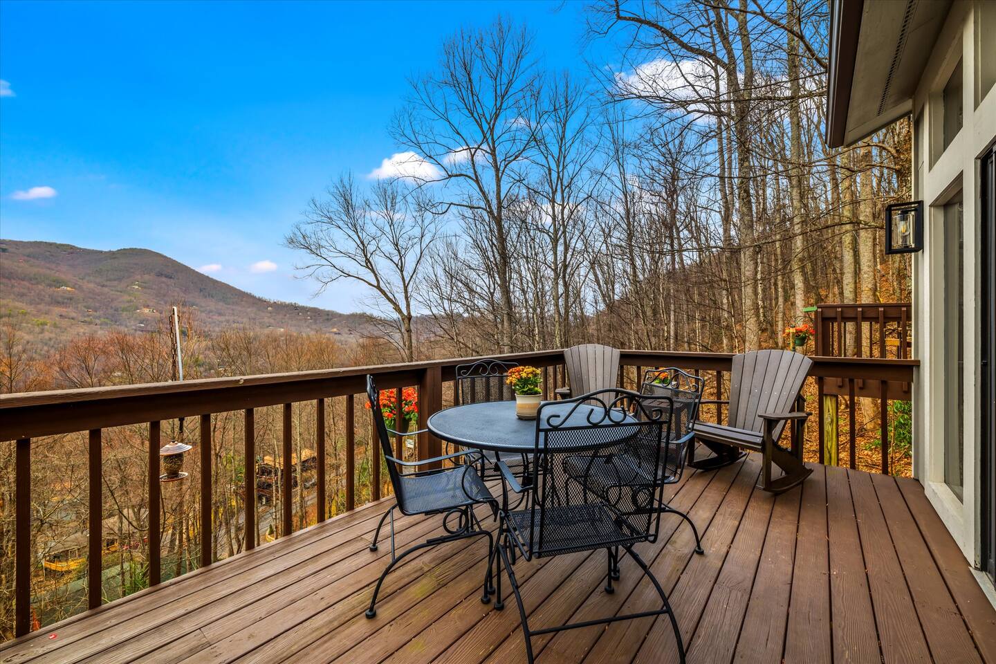 This VERY CLEAN and updated cabin with Central Heat and Air in the Mountains of Maggie Valley, NC. Your vacation starts in a private setting with easy paved roads. You will enjoy fabulous mountain views from the great room and master bedroom, as well as when you are relaxing in the hot tub, or dining on the deck while watching the colorful songbirds or occasional black bear that visits the property. Our cleaning fee includes a ready to go hot tub and we provide plenty of firewood for your stay!