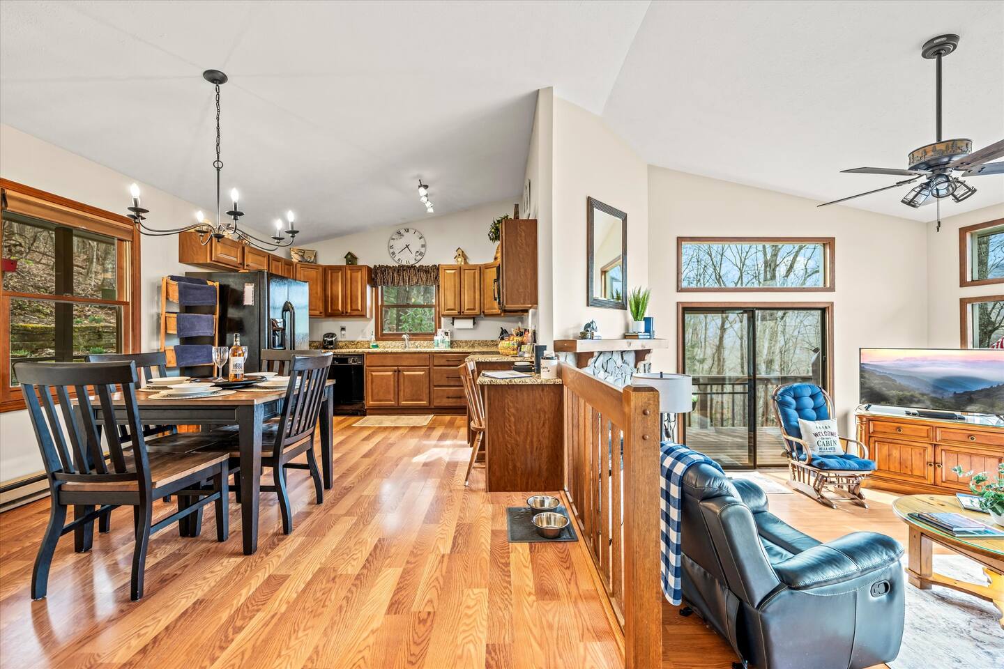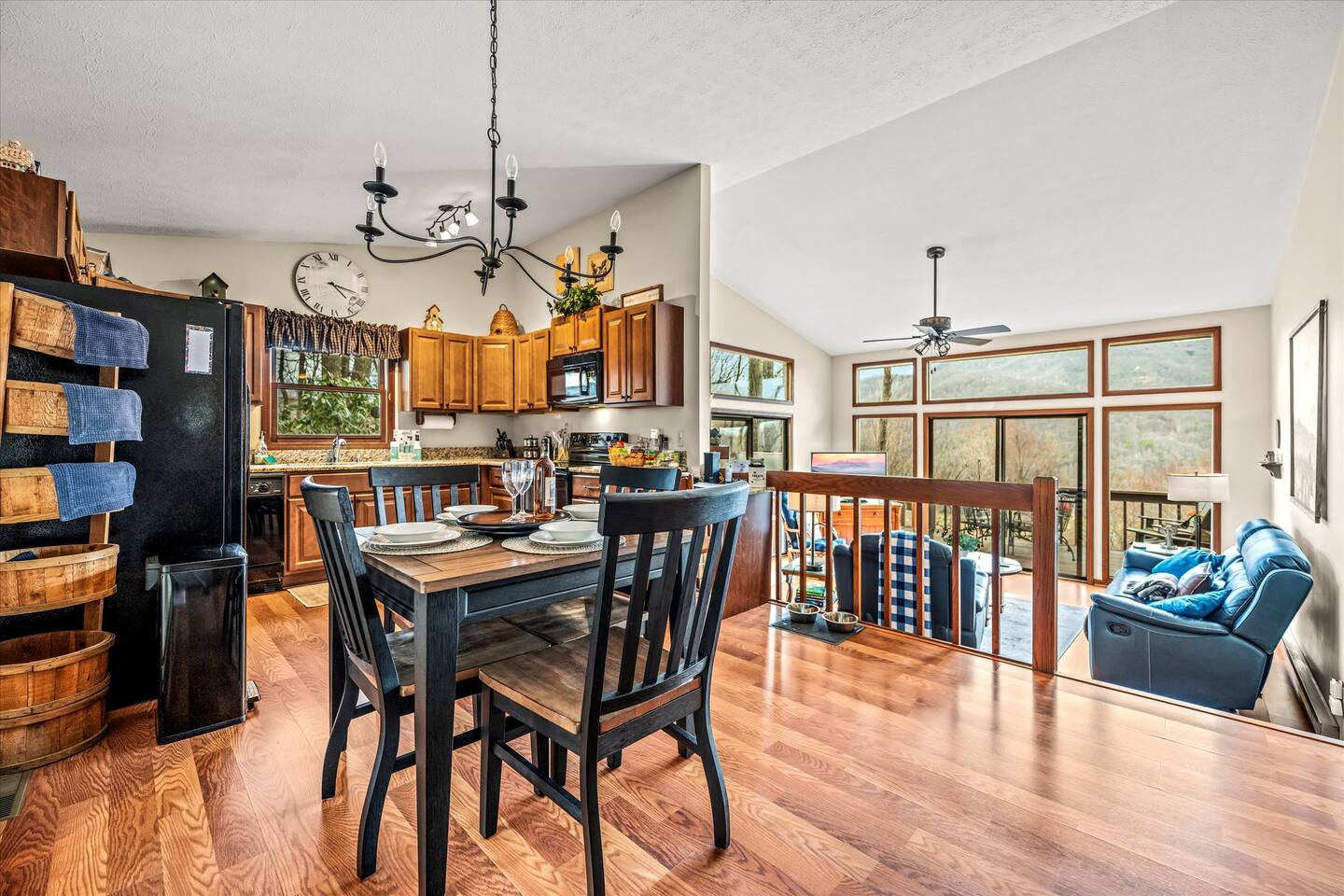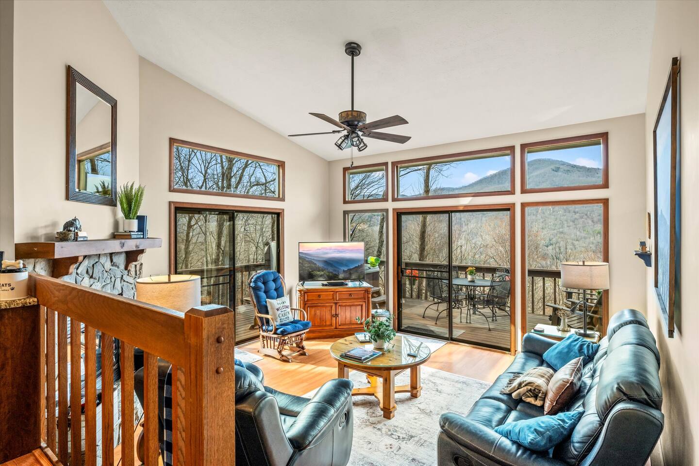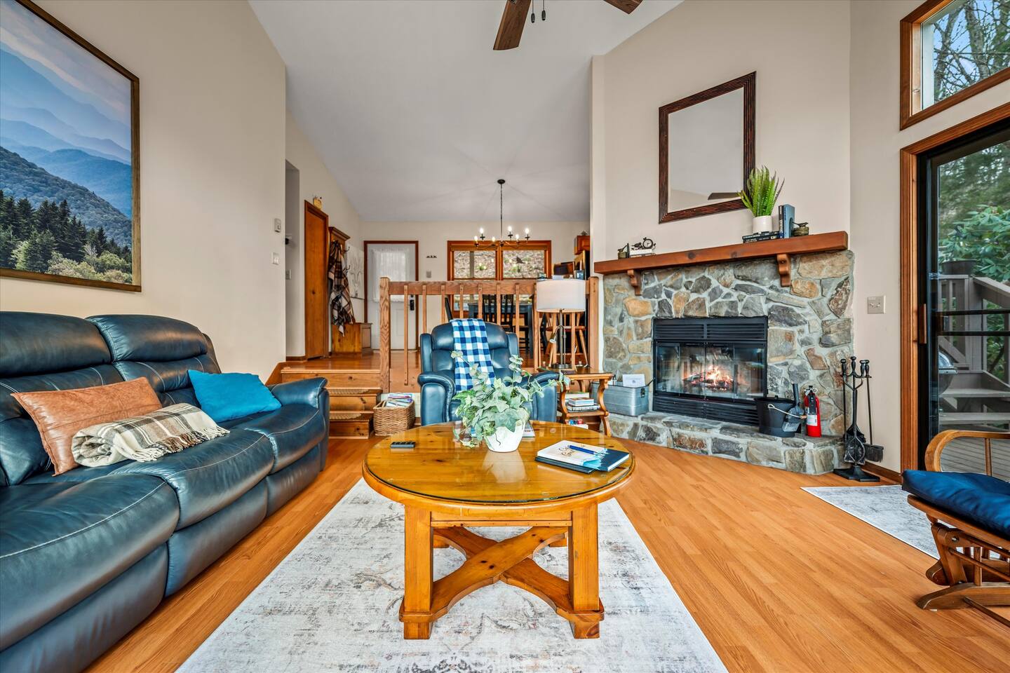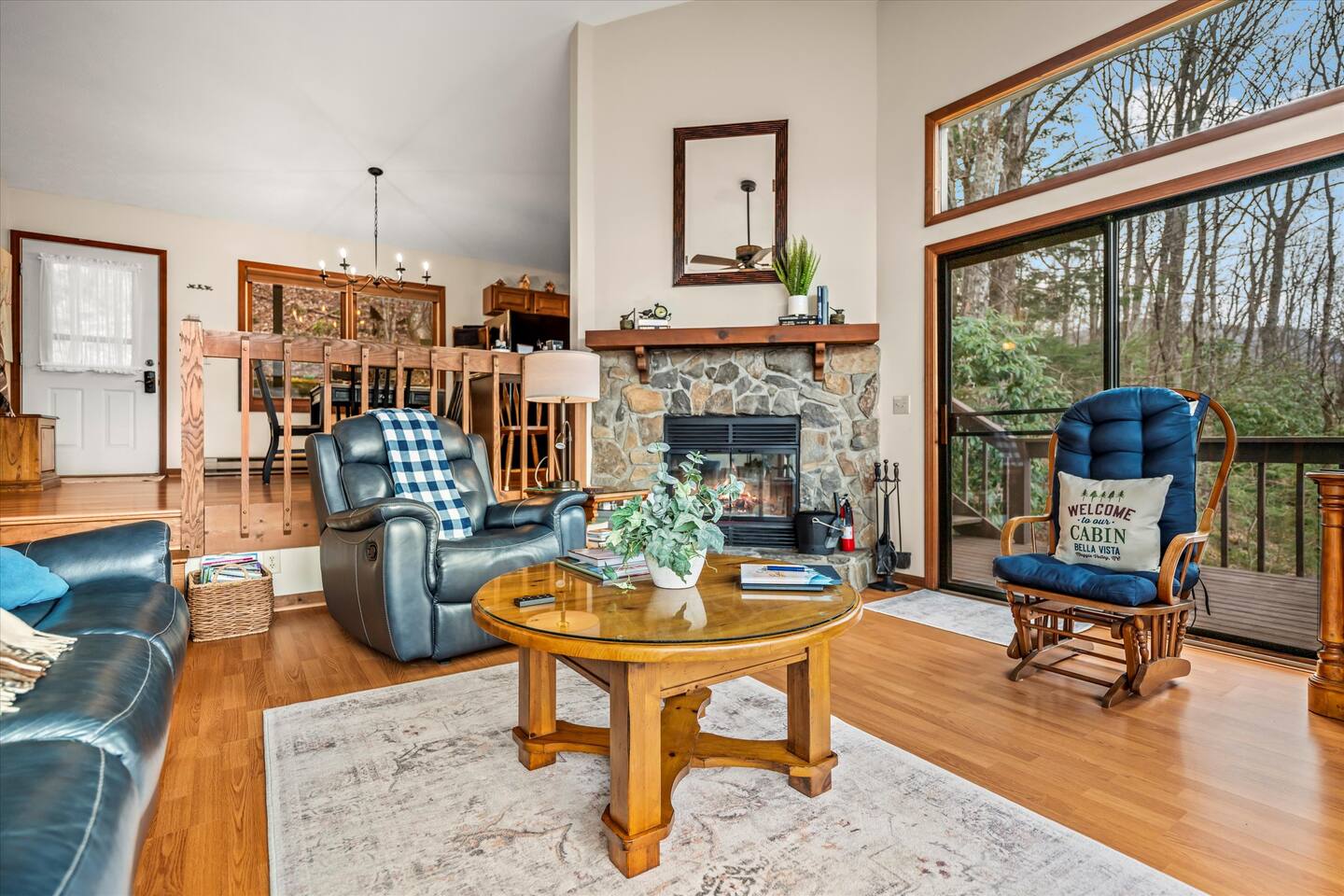 This VERY CLEAN and updated cabin with Central Heat and Air in the Mountains of Maggie Valley, NC. Your vacation starts in a private setting with easy paved roads. You will enjoy fabulous mountain views from the great room and master bedroom, as well as when you are relaxing in the hot tub, or dining on the deck while watching the colorful songbirds or occasional black bear that visits the property. Our cleaning fee includes a ready to go hot tub and we provide plenty of firewood for your stay!