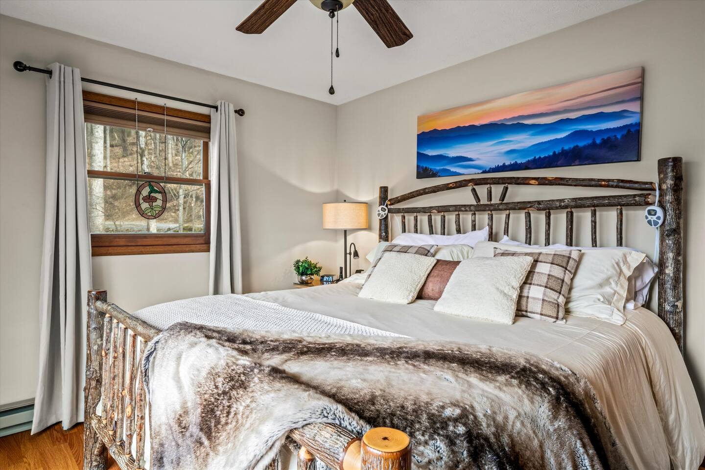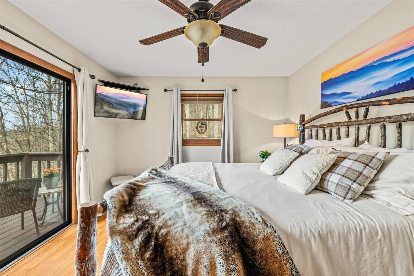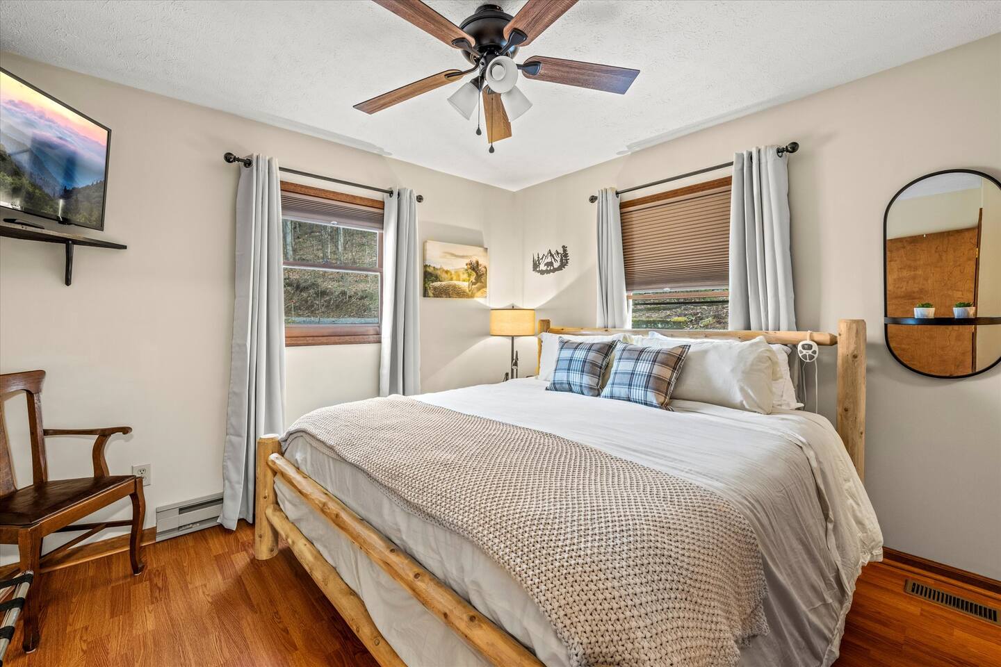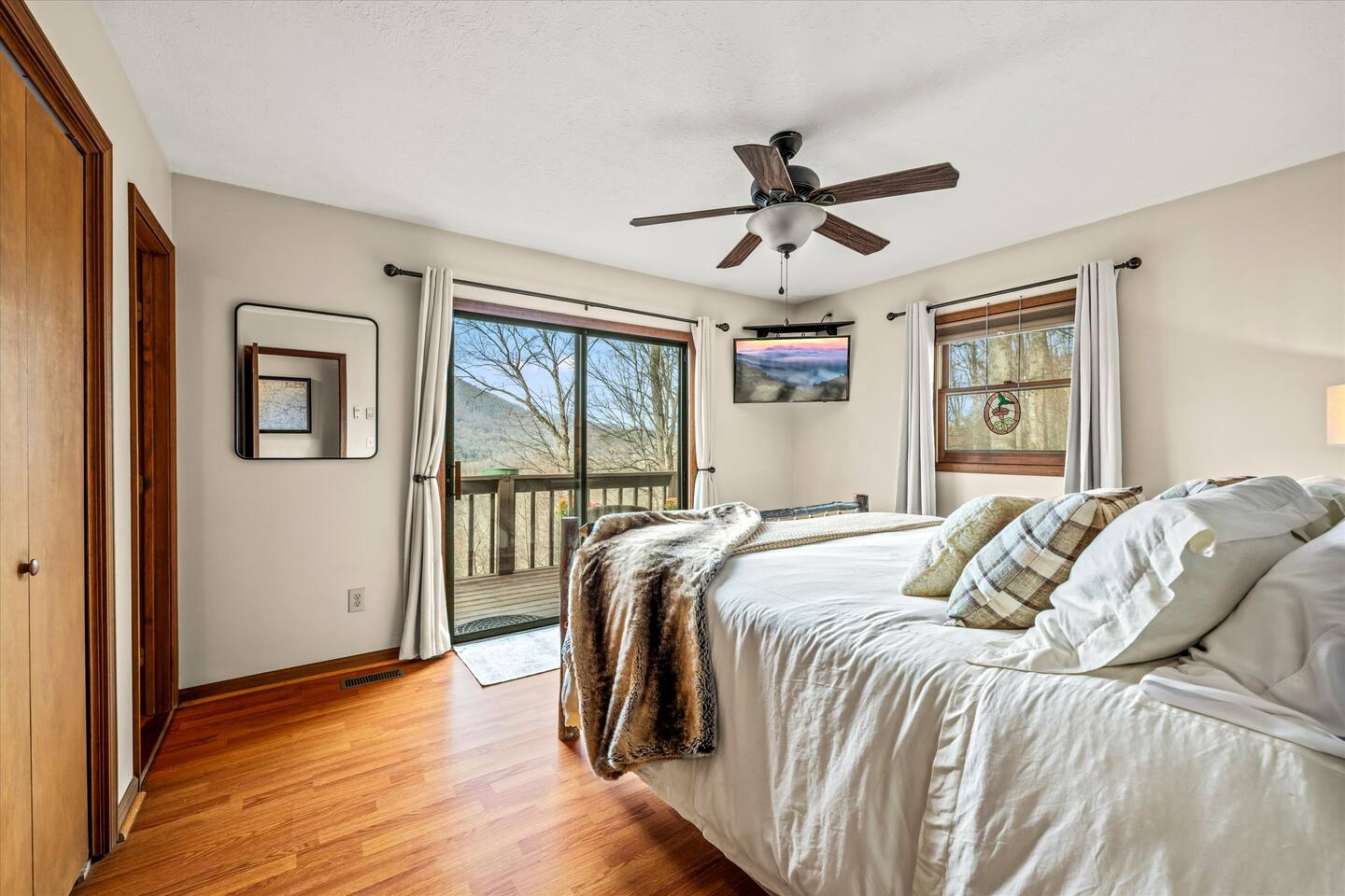 You will be located only minutes away from many popular attractions such as the Biltmore House and Gardens in Asheville, Cherokee Indian Reservation and Harrah’s Casino, Blue Ridge Parkway, numerous championship golf courses, horseback riding, exciting whitewater rafting, snow skiing on Cataloochee Mountain, Great Smoky Mountain National Park and Railroad, gem mining, as well as delightful craft and antique shopping and dining in Asheville, Maggie Valley, Waynesville, and Dillsboro. Viewing the elk in Cataloochee Valley or around town is also a wonderful treat. You will appreciate all the amenities of this Non-Smoking home such as a central heat and air conditioning, wood floors throughout, wood burning fireplace, refrigerator, electric oven/stove, microwave and full size washer and dryer. The fully equipped kitchen also includes granite countertops and everything you would need for a gourmet dinner. Besides relaxing in the step-down great room, which has lots of floor to ceiling windows to enjoy the wonderful view, you may want to enjoy the TV (50"), Smart TV's for streaming, DVD or wireless internet access for all your electronic devices. The master bedroom includes a new comfy king size bed with NEW tiled walk in shower in the master bath. It also features a 50” flat screen Smart TV and private deck with chairs to enjoy your morning coffee while reading or taking in the crisp morning air, catching up on the news on your device or watching the songbirds. The second bedroom includes a comfy king size bed, 42" Smart TV and also has a private bath. Pets are welcome with a non-refundable pet fee of $100. Fee will be sent and collected via the Airbnb resolution center. In order to prevent separation anxiety-induced damage from your usually well-behaved pets, we ask that you either take your pets with you or crate them when you are not going to be with them.
